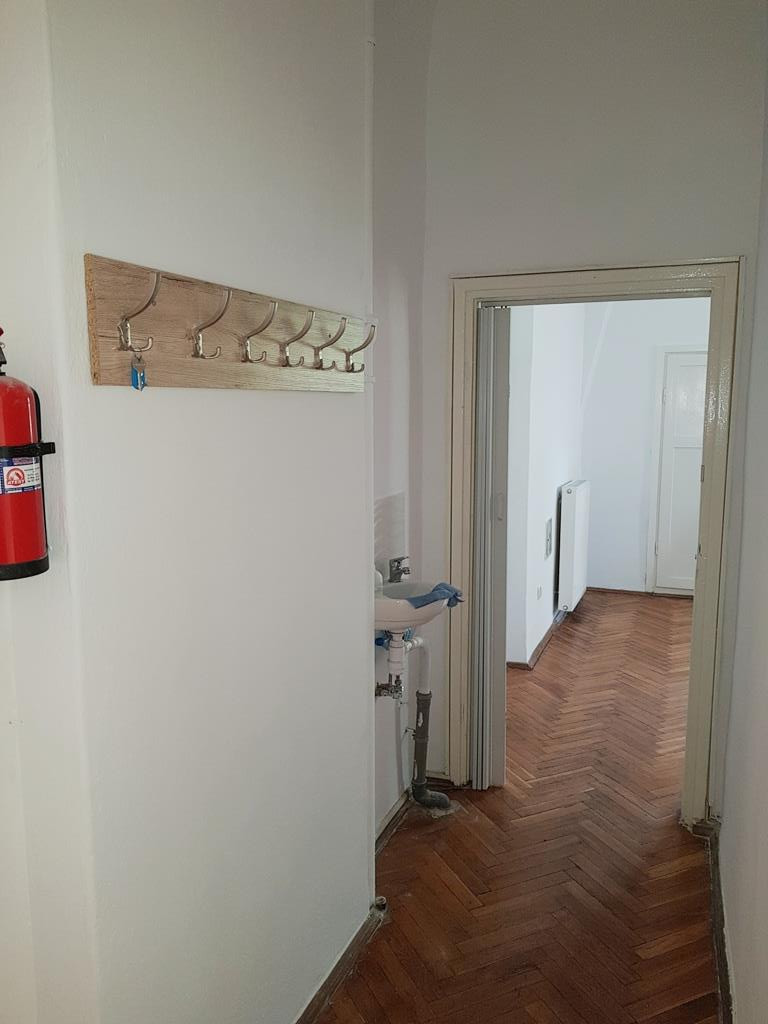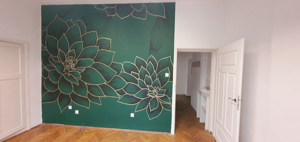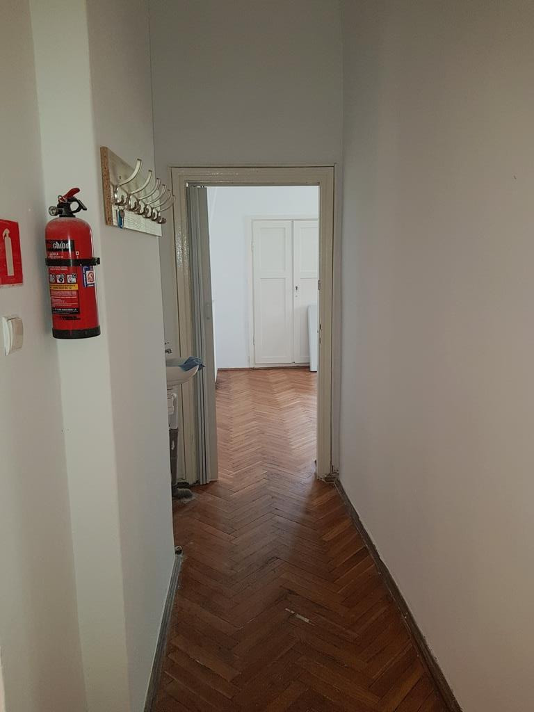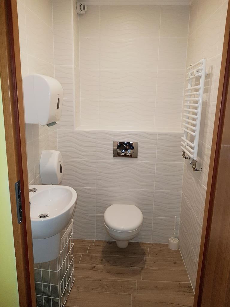 Ściany i sufity gładzone, ozdobna tapeta i malowane, na podłogach parkiet, sufit z oświetleniem rastrowym. Toaleta wspólna z innymi najemcami (tylko kilku użytkowników, sprząta wynajmujący) czysta i zadbana.