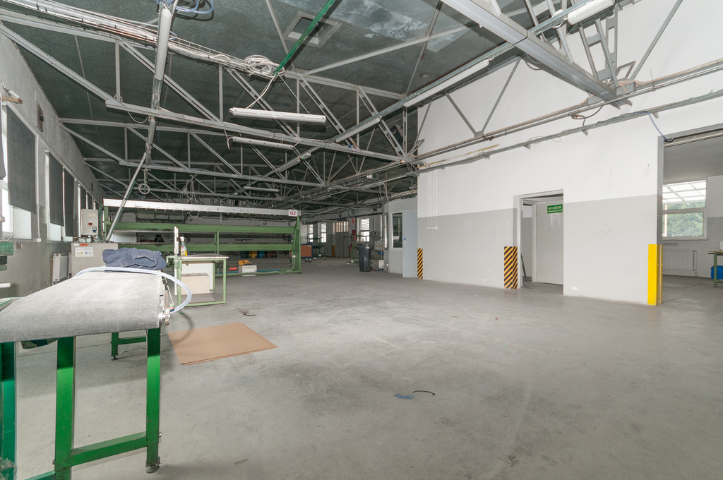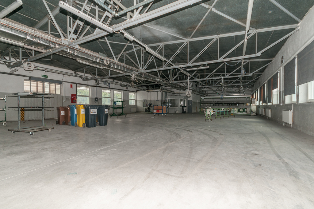 Druga część hali ma wymiary ok. 45m x 15m i wysokości ok. 3,15m w najniższym punkcie. W tej części dostępne są dwie bramy o szerokości ok. 250cm i wysokości 300cm, a także drzwi wyjściowe z hali.