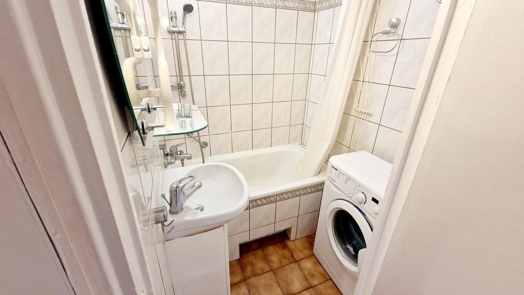 Mieszkanie 30 m2 składa się z dużego pokoju ( jasnego i słonecznego) , osobnej widnej kuchni ,łazienki z wanną , toalety oraz przedpokoju.